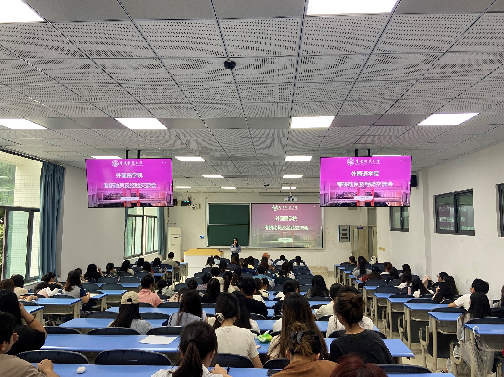 考研咨询专家从2024届最新考研形势分析、考研报考情况分布、外国语学院专业报考推荐、跨考推荐、复习建议五个方面开展了专题讲座。咨询专家还就如何备战考研英语科目考试进行了详细讲解。2024届已录取研究生代表分享了自己的考研初试备考、复试准备以及调剂填报等方面的经验。陶兰对正在准备考研学生提出了三点建议:一是通盘谋划,精心备考;二是定点发力,认真应考;三是调整心态,轻松赴考。